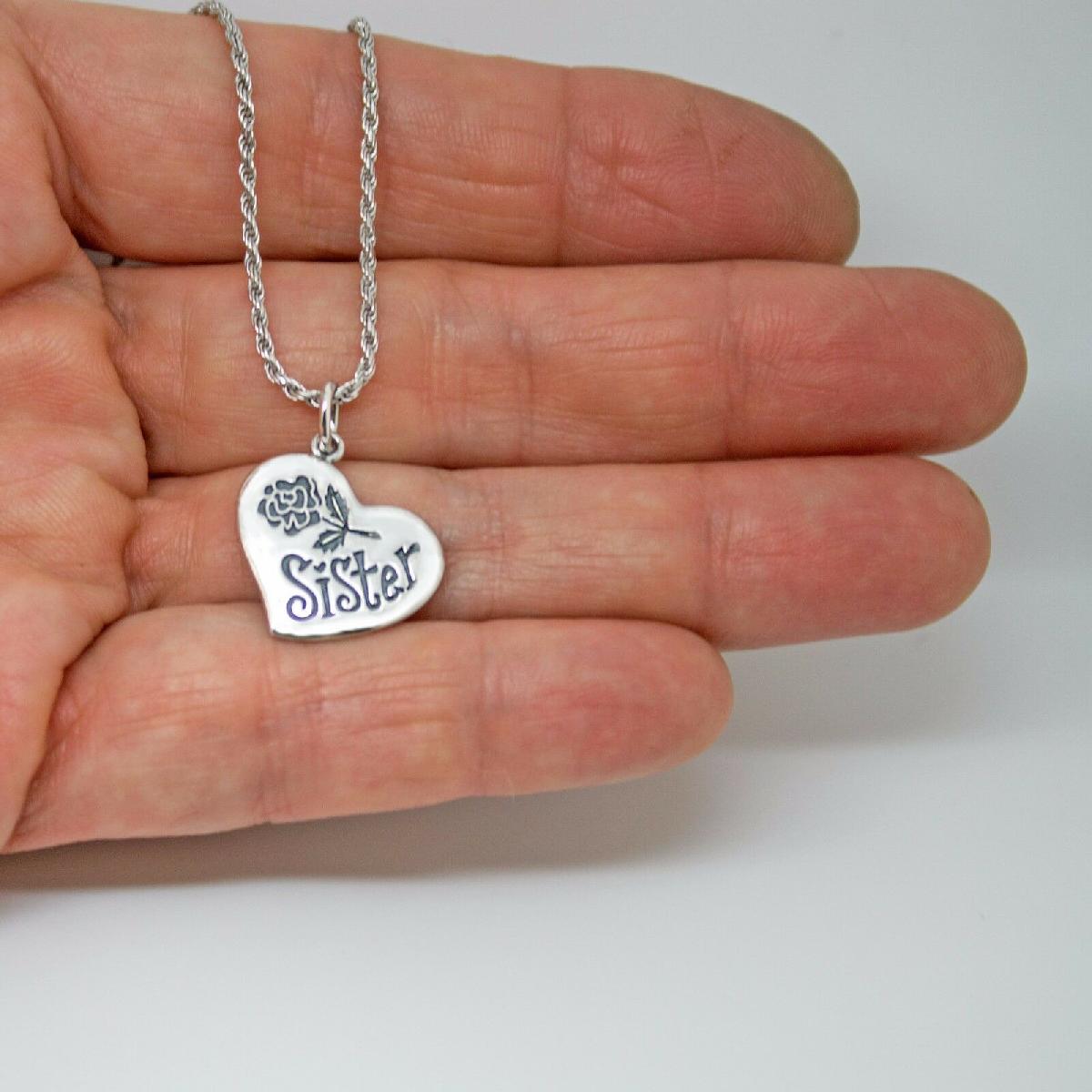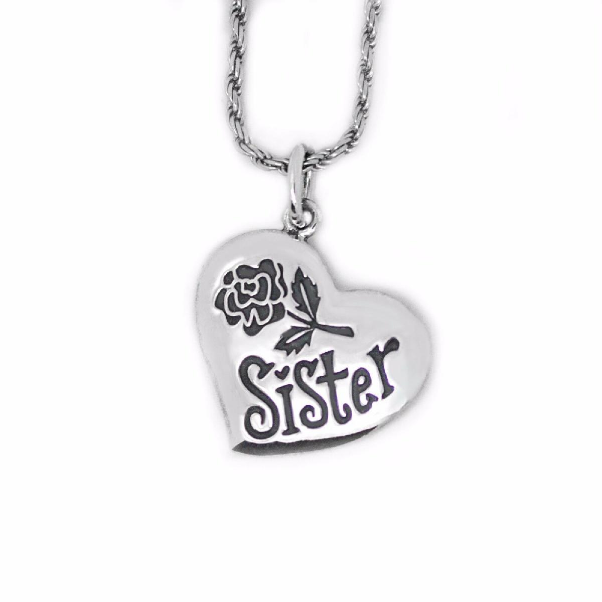 925 SOLID STERLING SILVER "SISTER" IN HEART WITH ROSE PENDANT [ENDED]