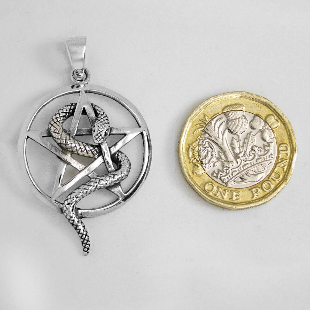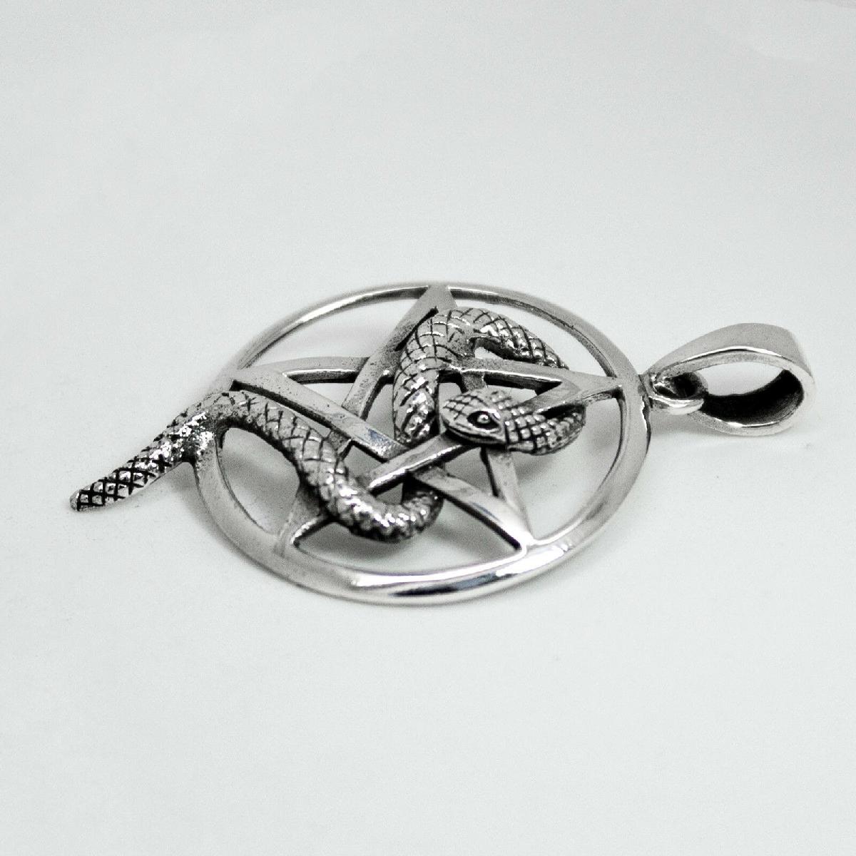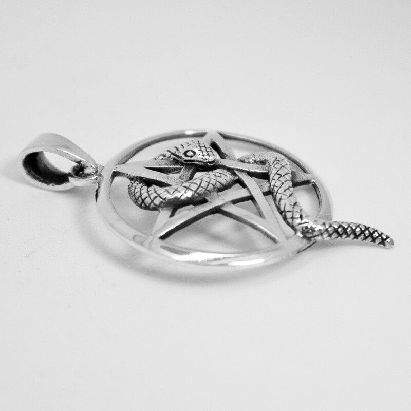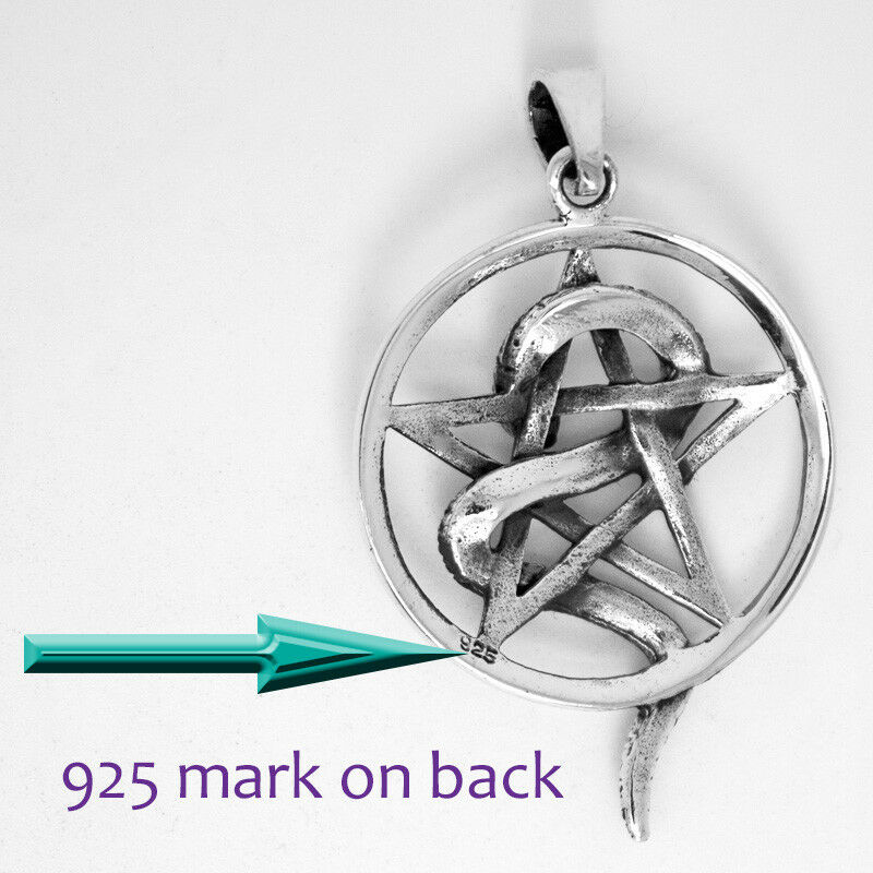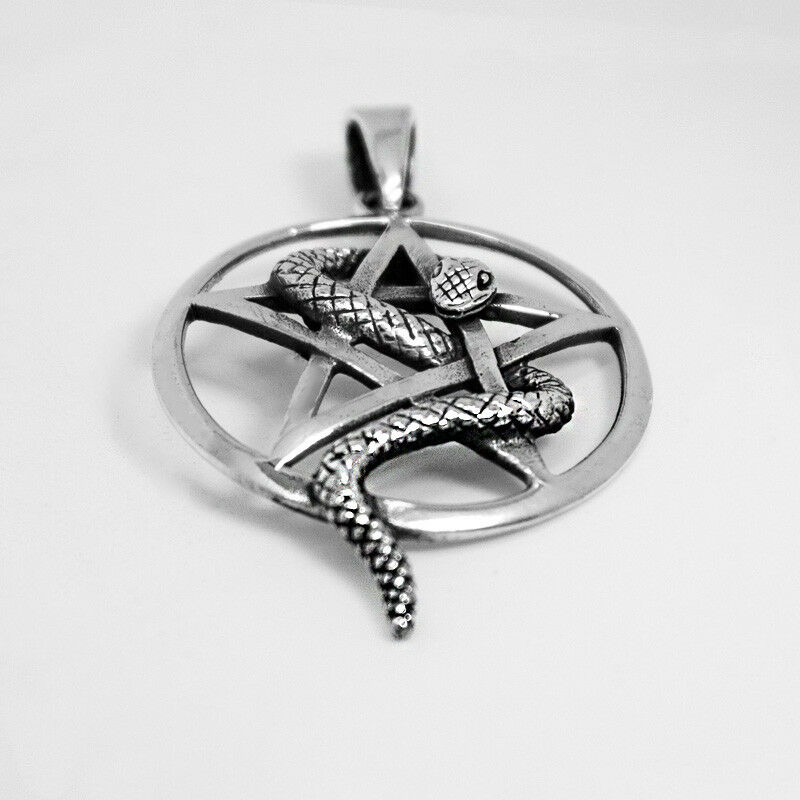 925 SOLID STERLING SILVER PENTAGRAM PENTACLE WITH SNAKE WISDOM RENEWAL PENDANT [ENDED]