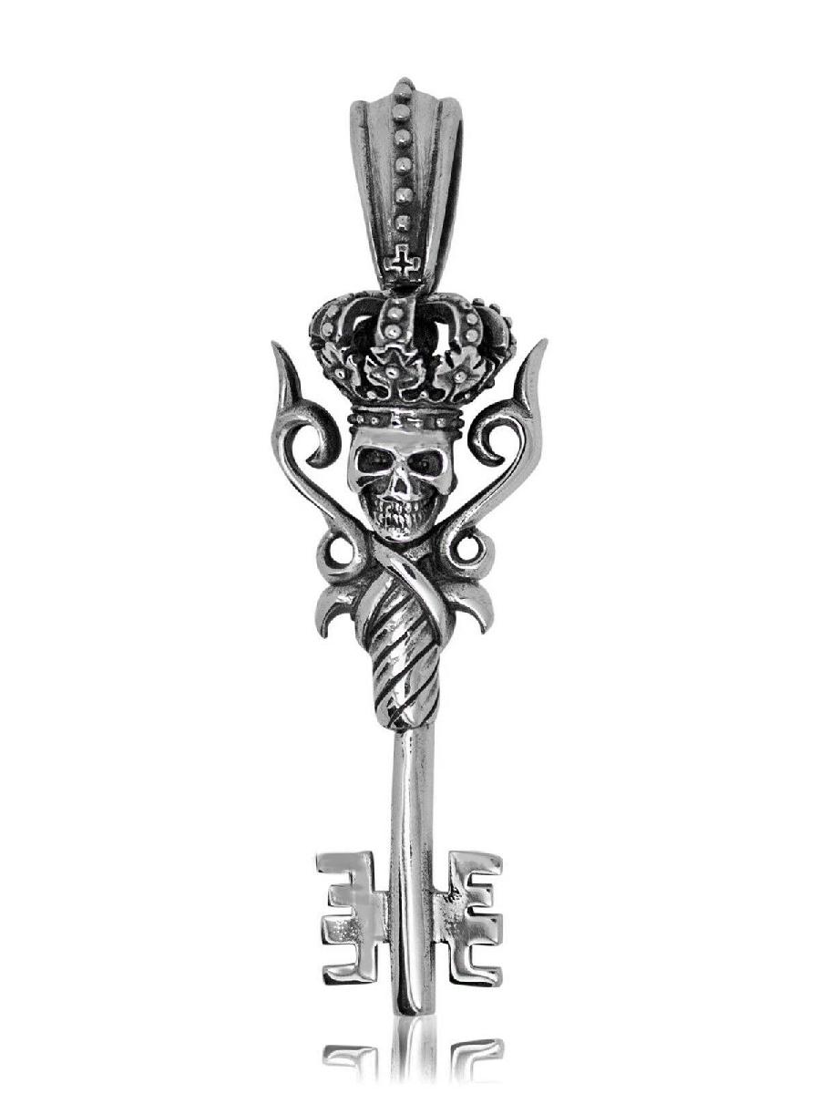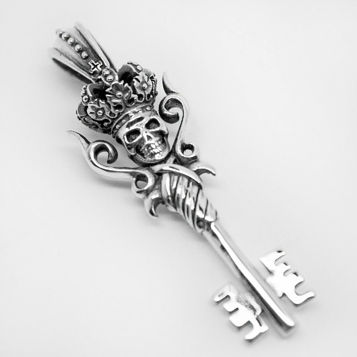 925 SOLID STERLING SILVER SKULL KEY WITH CROWN PENDANT [ENDED]