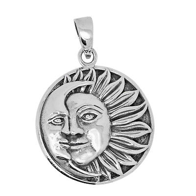 925 SOLID STERLING SILVER MOON AND SUN PAGAN WICCAN ASTRAL DESIGN PENDANT [ENDED]