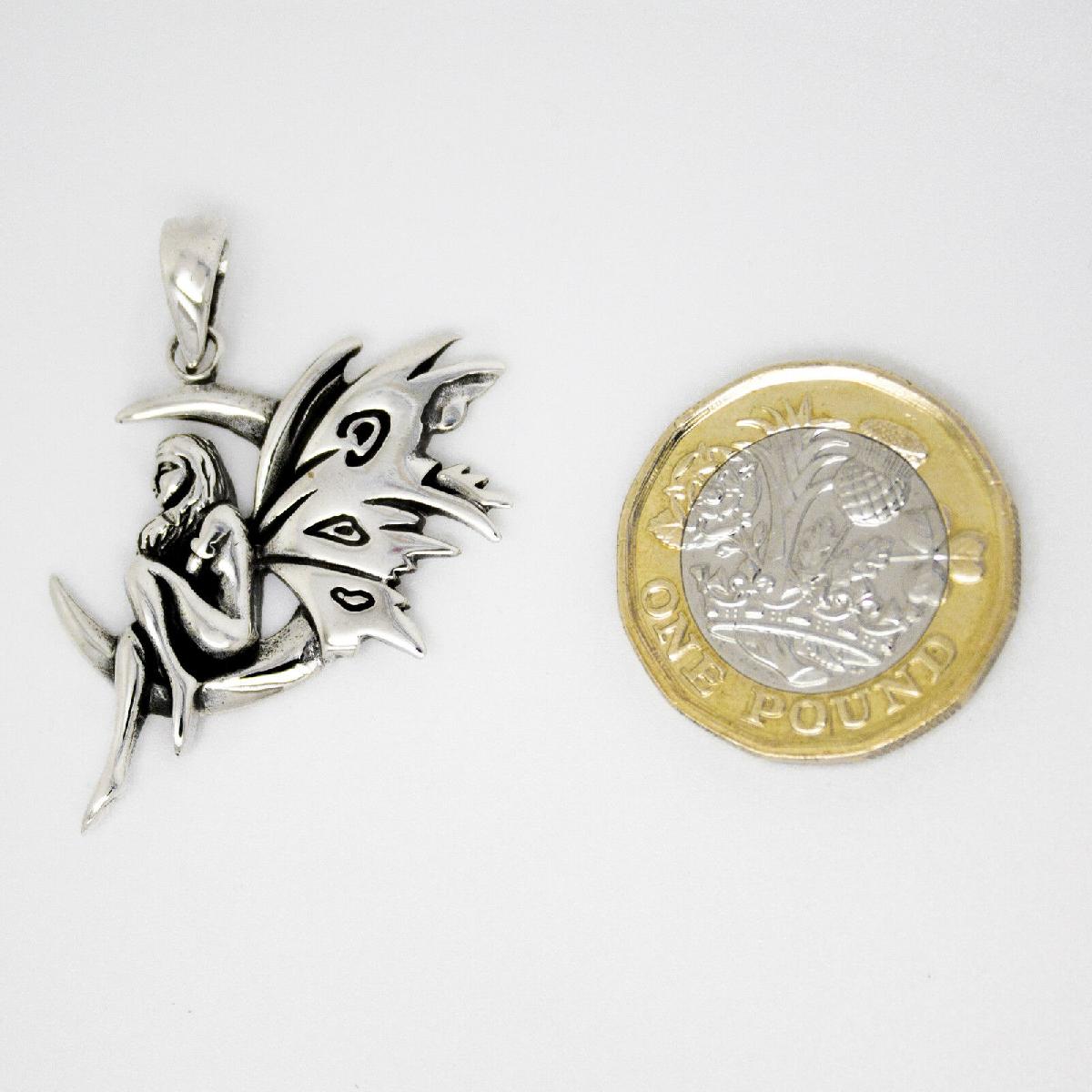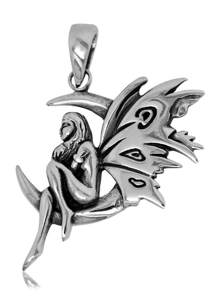 925 SOLID STERLING SILVER FAIRY ON THE MOON PENDANT [ENDED]