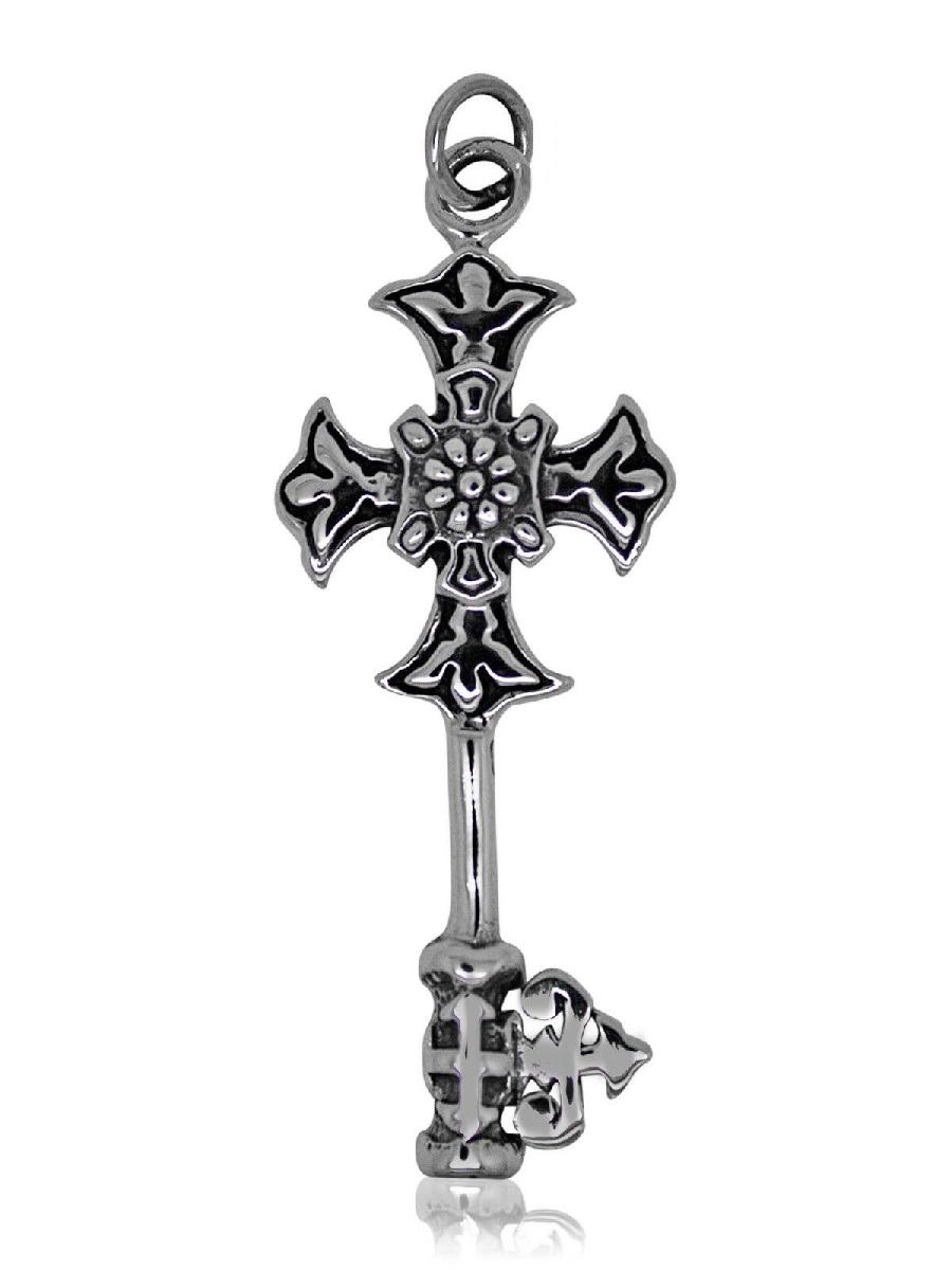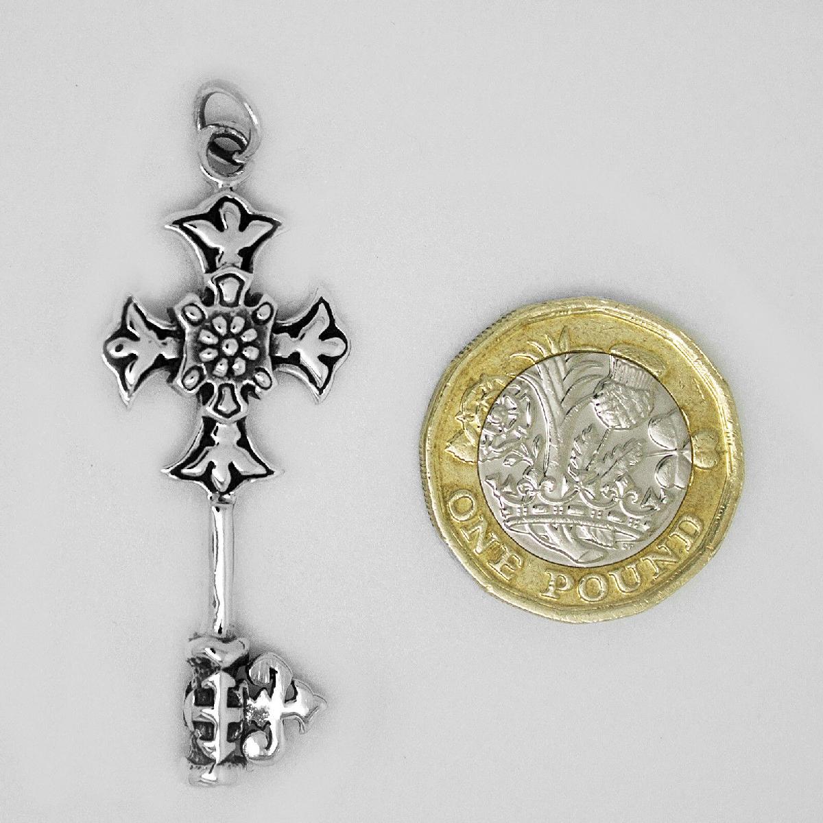 925 SOLID STERLING SILVER CELTIC MEDIEVAL KEY QUATERNARY CROSS PENDANT [ENDED]