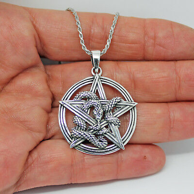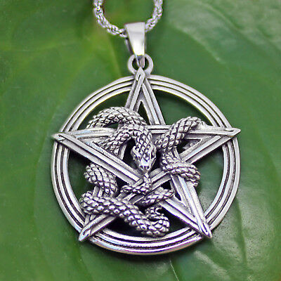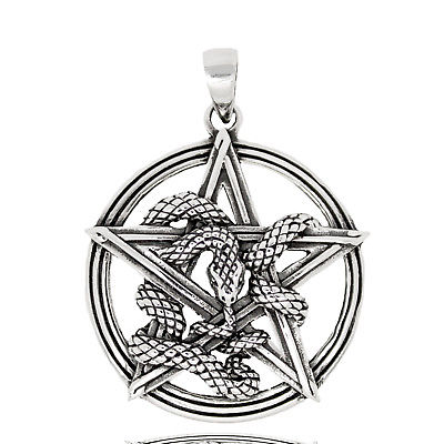 925 SOLID STERLING SILVER PENTAGRAM PENTACLE WITH SNAKE OUROBOROS PENDANT [ENDED]