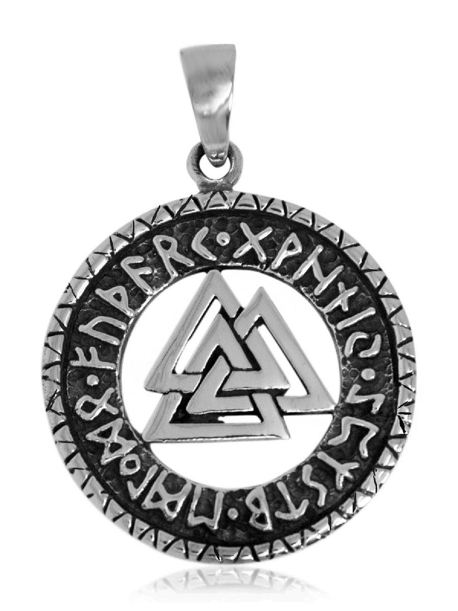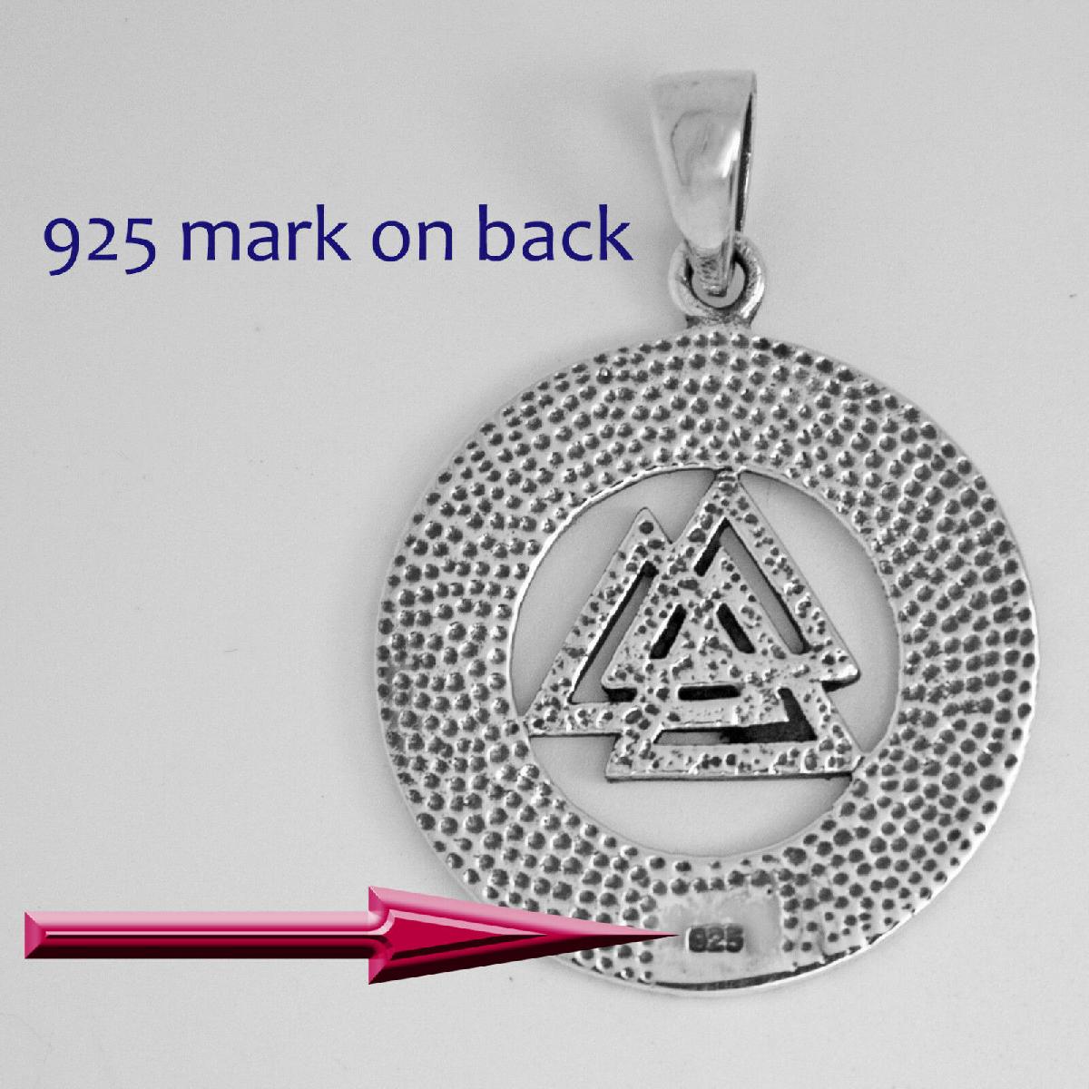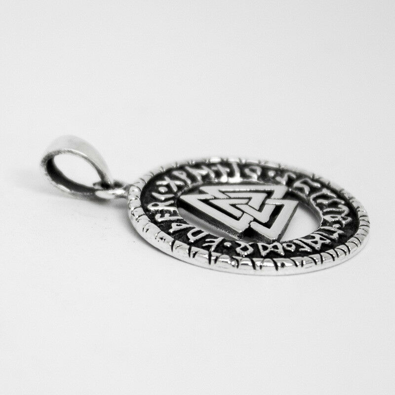 925 SOLID STERLING SILVER NORSE VIKING VALKNUT KNOT OF THE SLAIN W.RUNES PENDANT [ENDED]