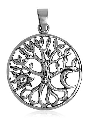 925 SOLID STERLING SILVER NORSE YGGDRASIL TREE OF LIFE WITH SUN AND MOON PENDANT [ENDED]