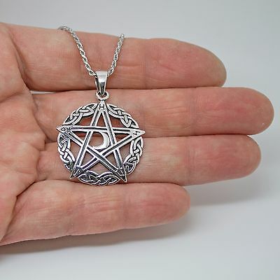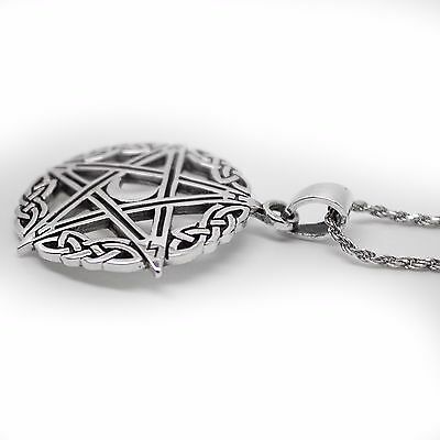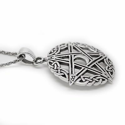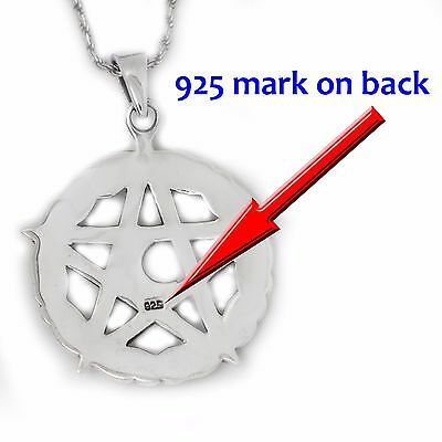 925 SOLID STERLING SILVER WICCA NEO PAGAN PENTAGRAM WITH MOON RUNES PENDANT [ENDED]