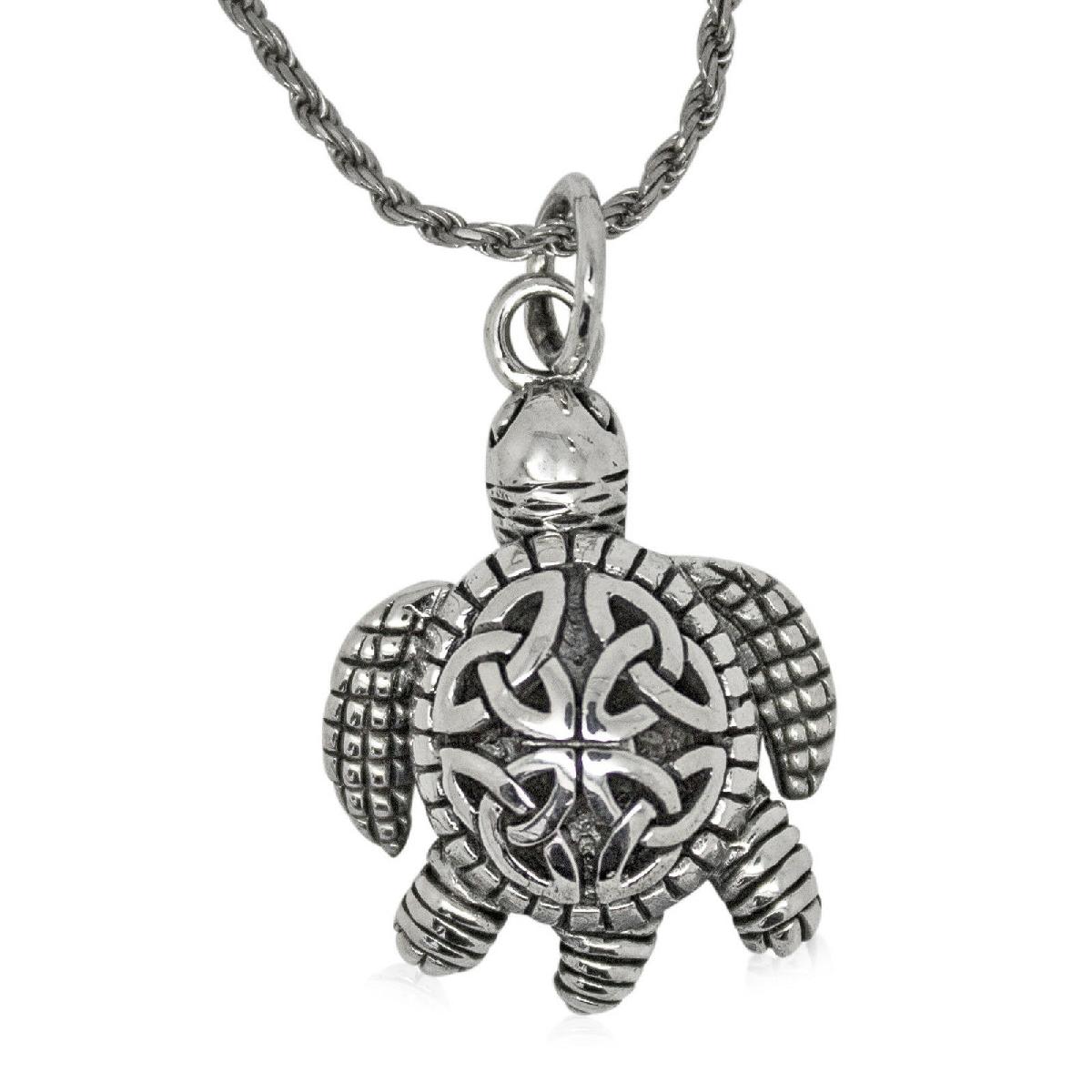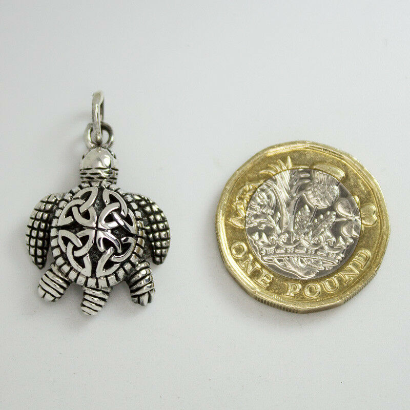 925 SOLID STERLING SILVER CELTIC TURTLE WITH 4 TRIQUETRAS PENDANT [ENDED]