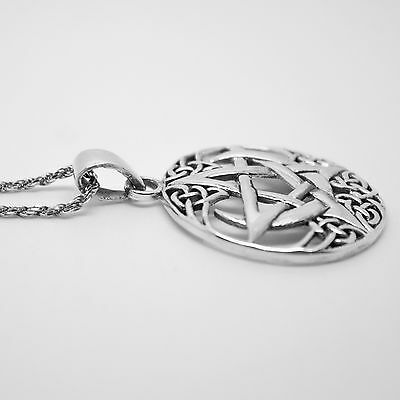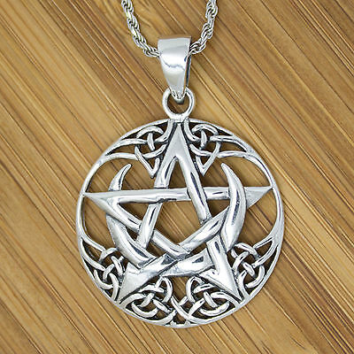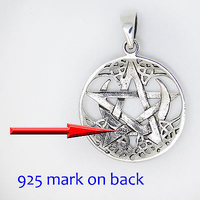 925 SOLID STERLING SILVER CELTIC WICCA NEO PAGAN PENTAGRAM WITH MOON PENDANT [ENDED]