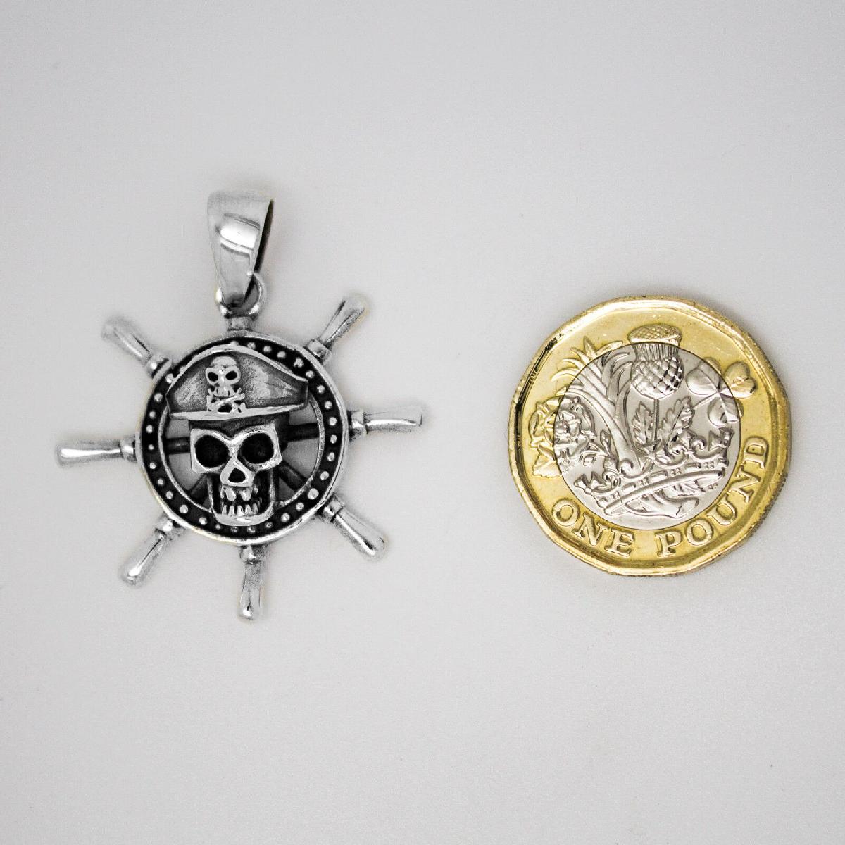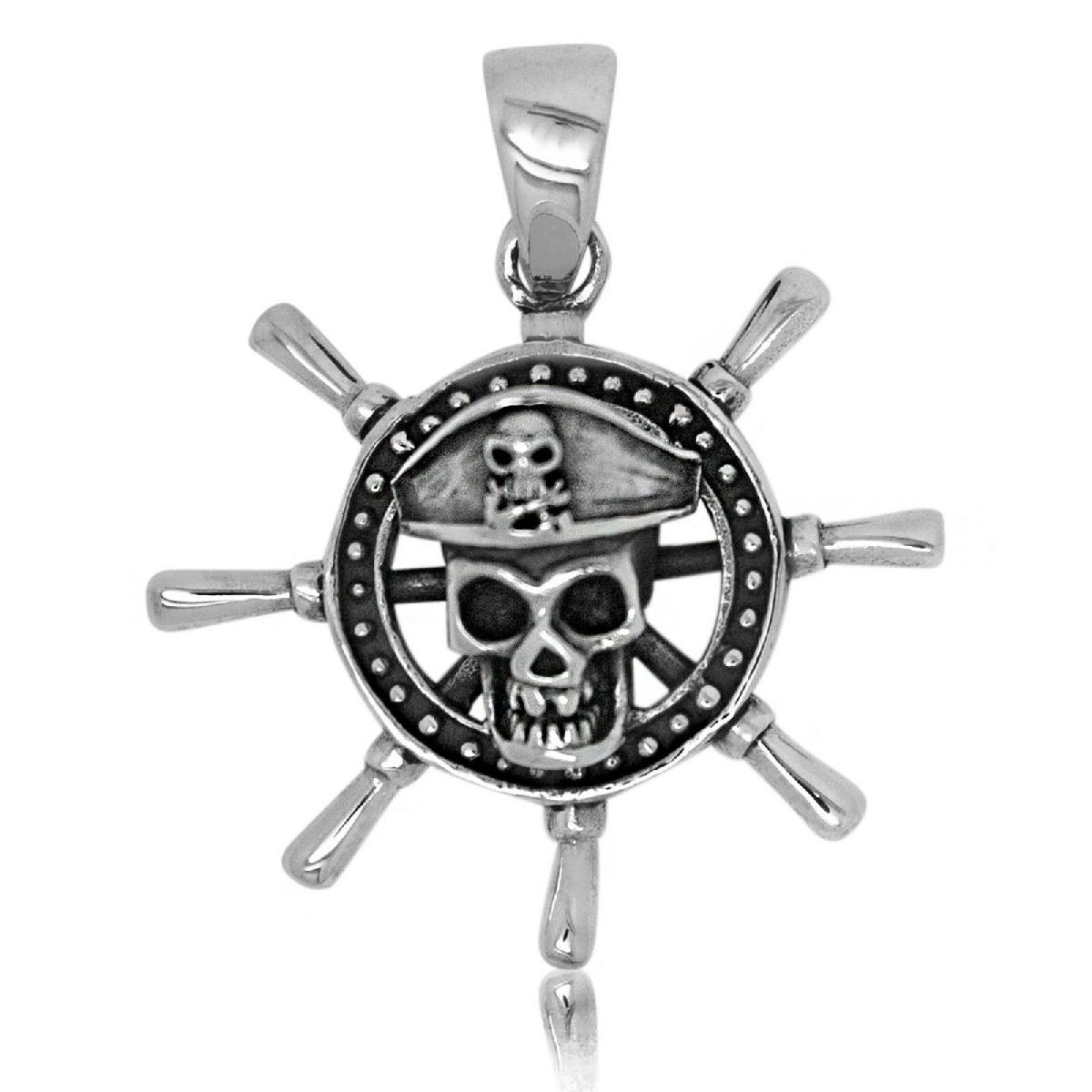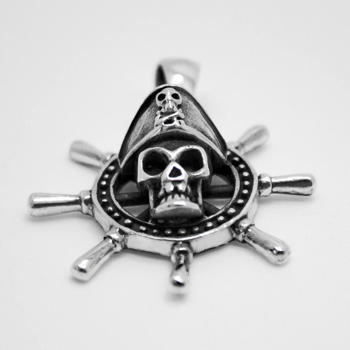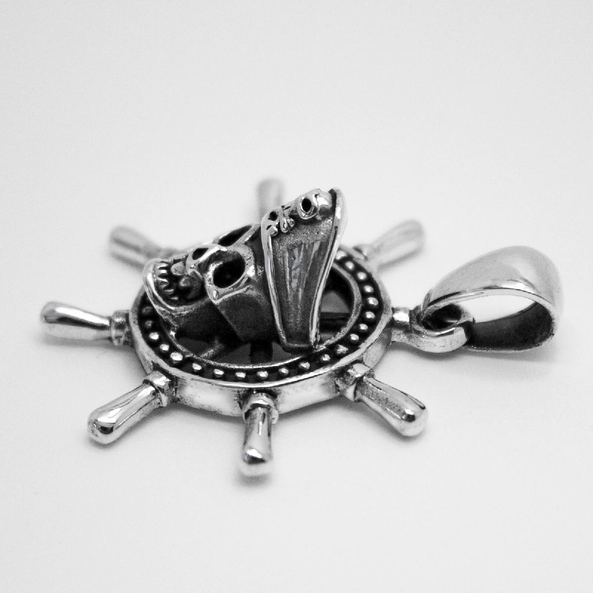 925 SOLID STERLING SILVER SKULL W HELM PIRATE GHOST SHIP FLYING DUTCHMAN PENDANT [ENDED]