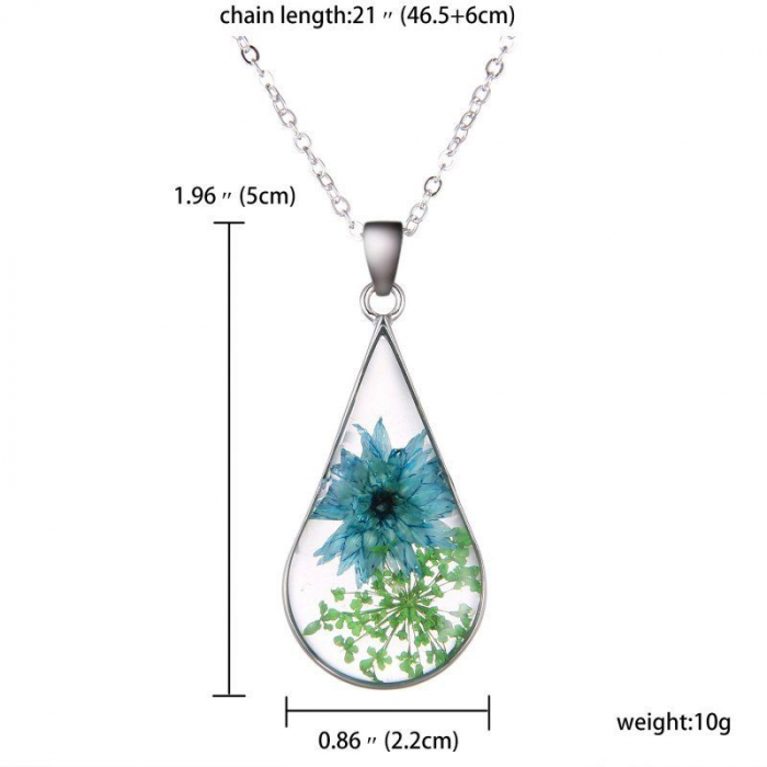 TRANSPARENT RESIN DRIED DAISY FLOWER WATERDROP PENDANT NECKLACE [ENDED]