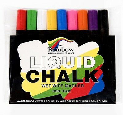 9 PACK RAINBOW LIQUID CHALK MARKER PEN 5MM BULLET NIB CHALKBOARD UK MANUFACTURER [ENDED]
