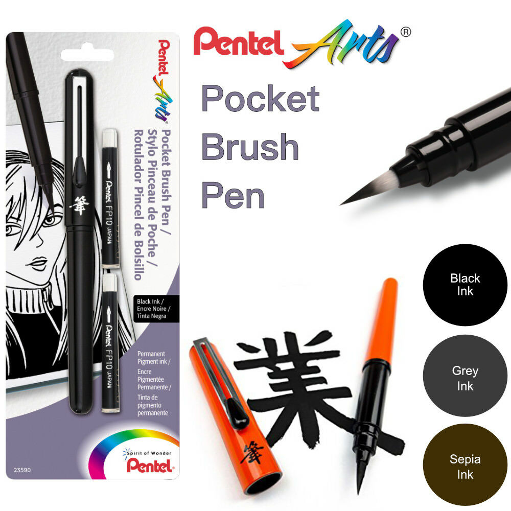 PENTEL POCKET BRUSH PEN+2 REFILLS. BLACK, GREY OR SEPIA INK. MANGA, DRAWING, ART [ENDED]
