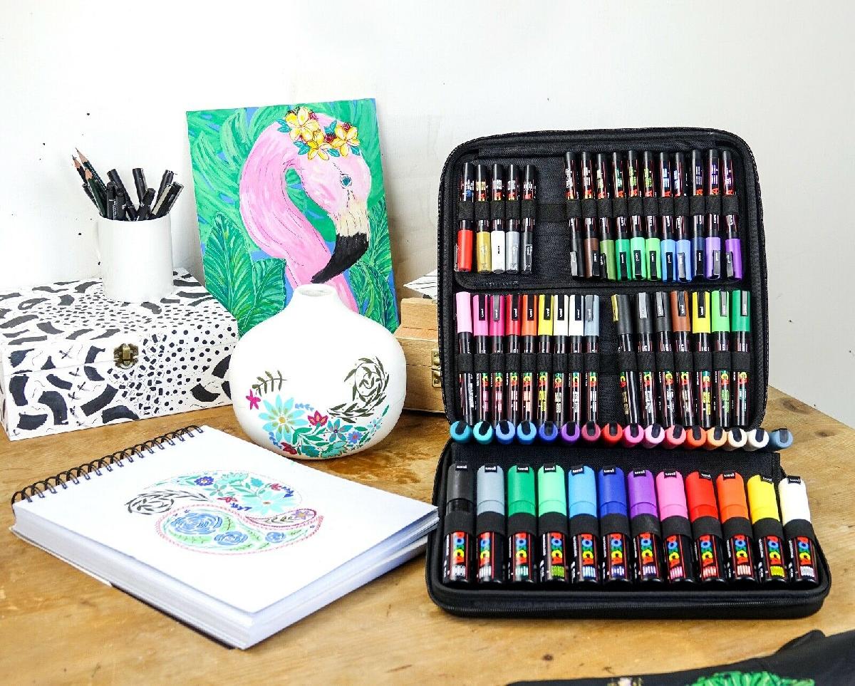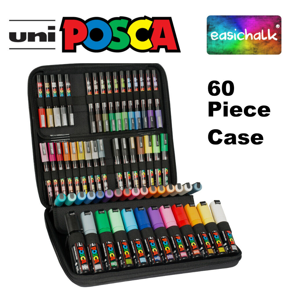 POSCA ART MARKERS 60 PIECE CARRY CASE PEN SET MIXED COLOURS & SIZES [ENDED]