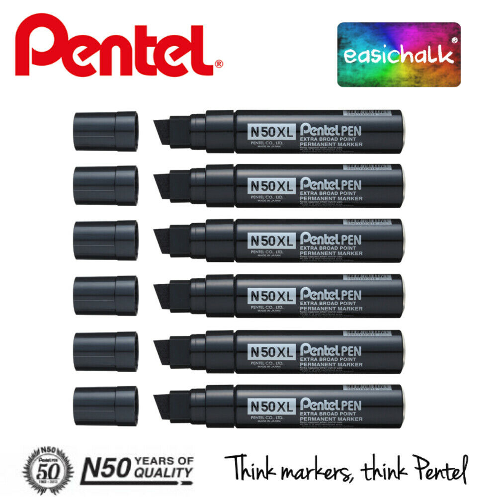 PENTEL N50XL BLACK JUMBO PERMANENT MARKER PEN CHISEL TIP GIANT THICK - PACK 6 [ENDED]