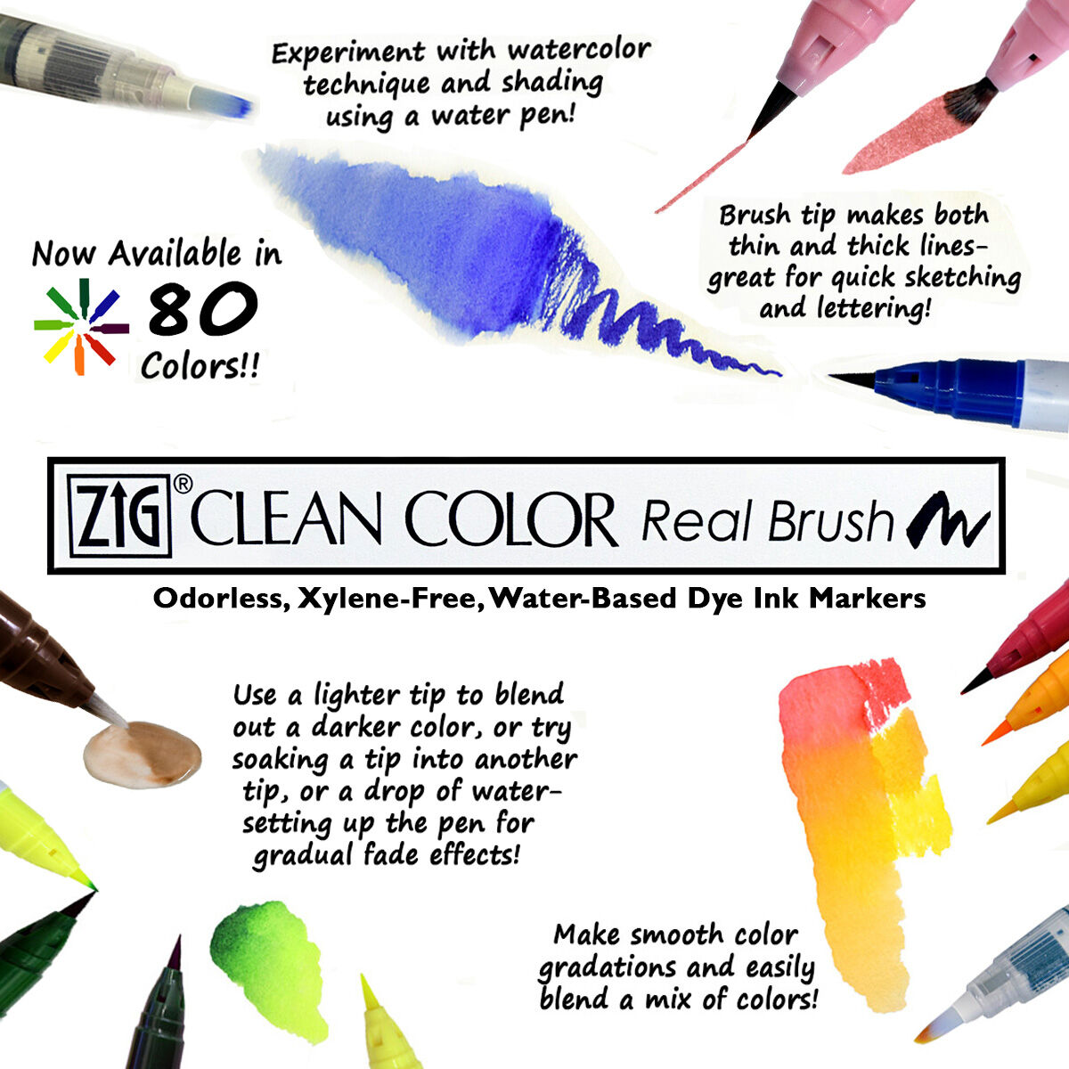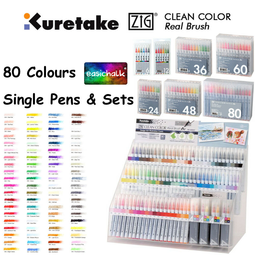 ZIG CLEAN COLOR REAL BRUSH PEN WATERCOLOUR ARTIST. 80 COLOURS + SETS KURETAKE [ENDED]