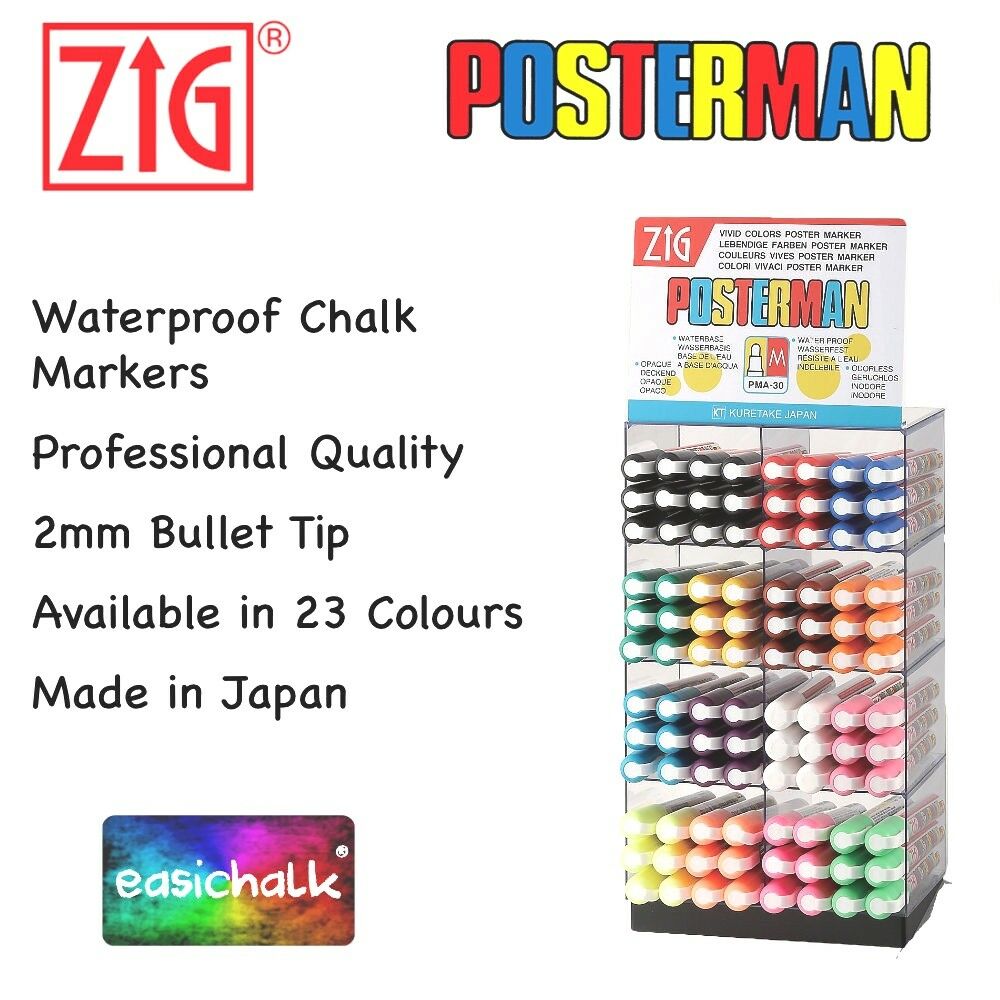 ZIG POSTERMAN WATERPROOF LIQUID CHALK MARKER PENS MEDIUM BULLET 2MM NIB PMA-30 [ENDED]