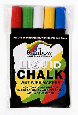 5 PACK RAINBOW LIQUID CHALK MARKER PEN 5MM CHISEL NIB CHALKBOARD UK MANUFACTURER [ENDED]