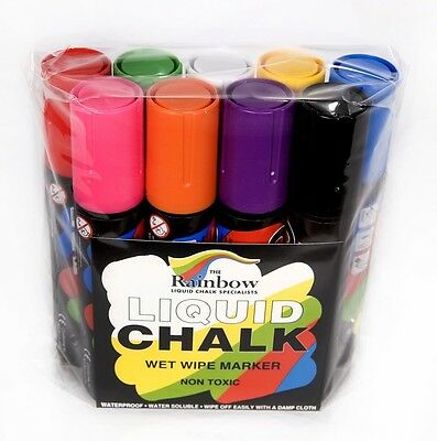 9 PACK RAINBOW LIQUID CHALK MARKER PEN 15MM BROAD NIB CHALKBOARD UK MANUFACTURER [ENDED]
