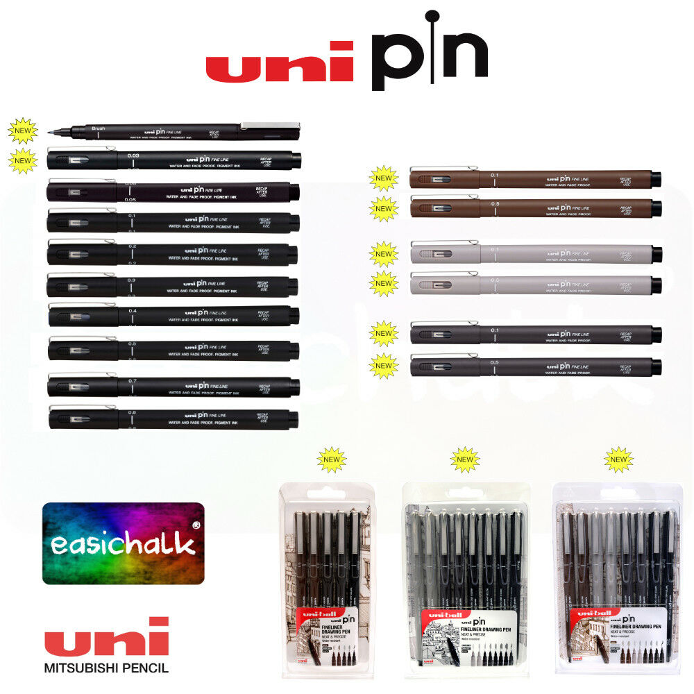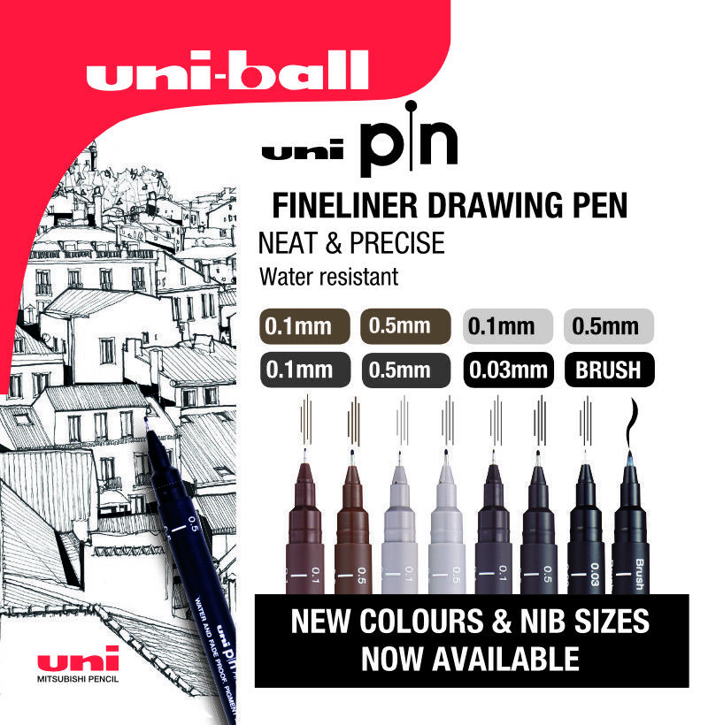 UNIBALL UNI PIN FINE LINE DRAWING TECHNICAL PEN WATER & FADE PROOF 11 SIZES, [ENDED]