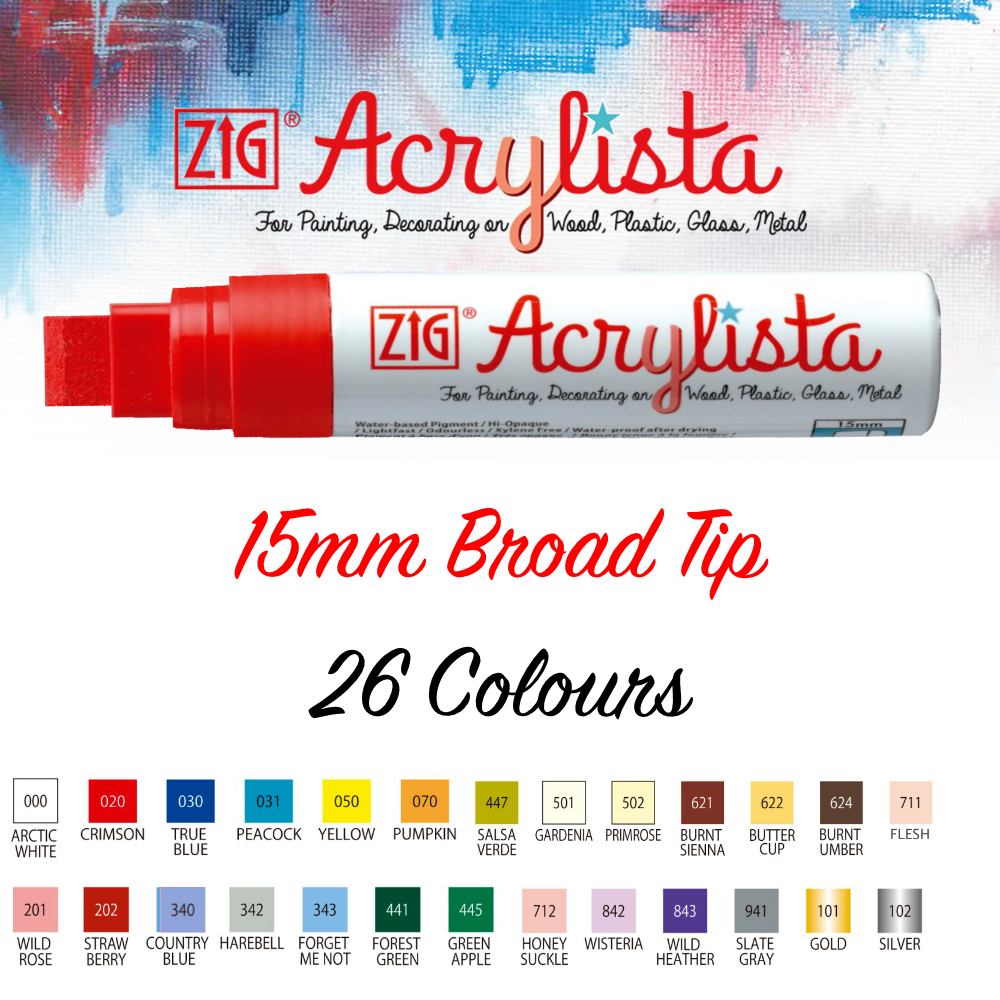 ZIG ACRYLISTA 15MM BROAD NIB PERMANENT PAINT CHALK MARKER PEN, GLASS METAL WOOD [ENDED]