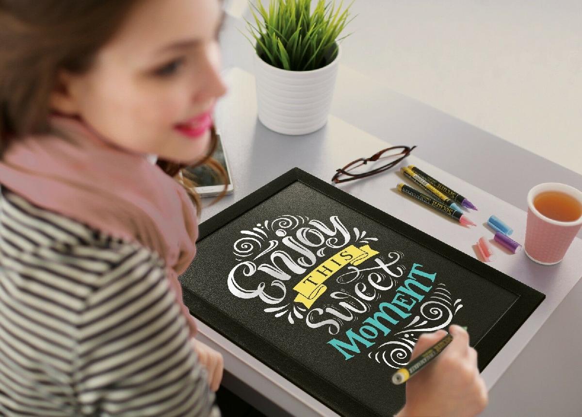 CHALKBOARD EASY CLEAN BLACK OR TEAK 2 SIZES PREMIUM FREE CHALK PEN [ENDED]