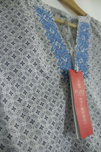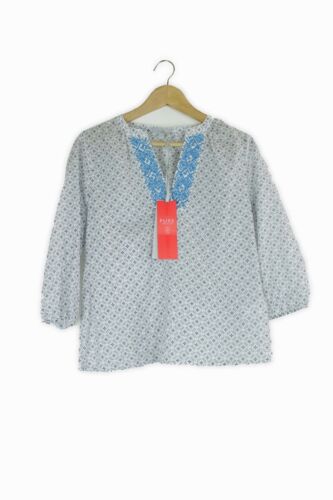 PURE COLLECTION WHITE & BLUE EMBROIDERED NECKLINE BOHO FOLK SUMMER BLOUSE TOP... [ENDED]