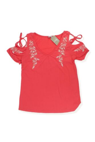 GEORGE ORANGE CORAL FLORAL EMBROIDERED COLD SHOULDER BLOUSE TOP SIZE 8 - BRAN... [ENDED]