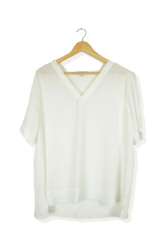PAPAYA WHITE SEMI SHEER V NECK BLOUSE TOP SIZE 16 [ENDED]