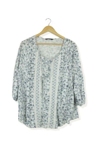 BONMARCHE WHITE & BLUE FLORAL BLOUSE CROCHET DETAIL SIZE 22 [ENDED]