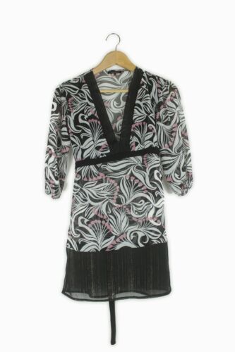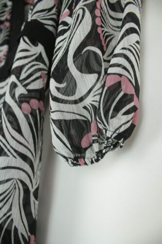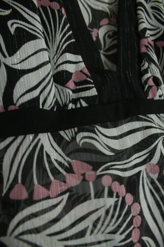 TUCHUZY? SEMI SHEER BLACK WHITE & PINK FLORAL TUNIC KIMONO BLOUSE TOP SIZE 12 [ENDED]