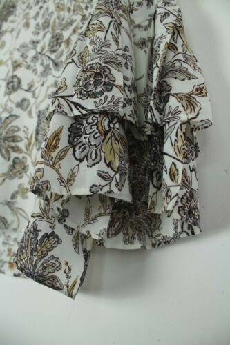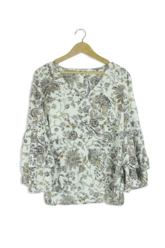 ROSE & OLIVE FLORAL V NECK FLUTE SLEEVE BLOUSE SIZE L [ENDED]