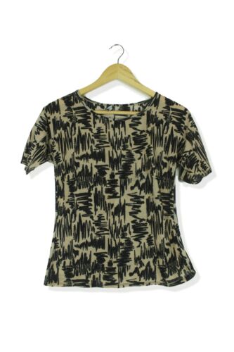ATMOSPHERE BEIGE & BLACK SQUIGGLE SEMI SHEER BLOUSE TOP SIZE 10 [ENDED]
