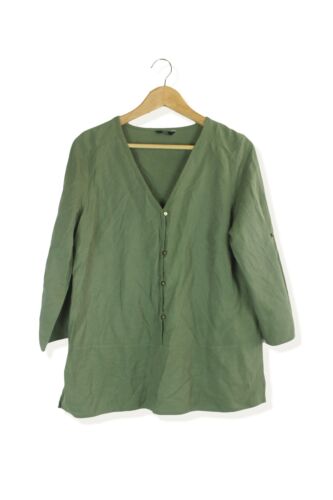 F&F KHAKI GREEN TEXTURED V-NECK SMOCK BLOUSE TOP SIZE 14 [ENDED]