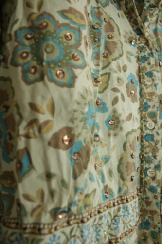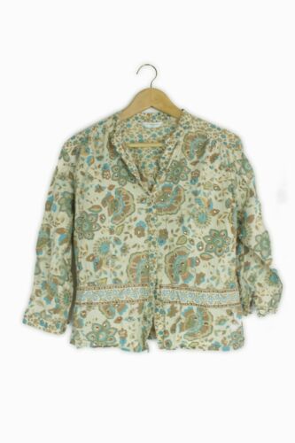 NEW LOOK BROWN & BLUE BOHO FOLK EMBELLISHED BLOUSE TOP SIZE 12 [ENDED]