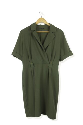 SELECT GREEN KHAKI V NECK SHIRT DRESS SIZE 14 [ENDED]