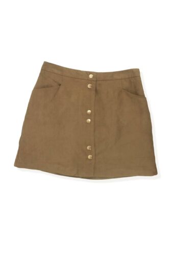 MISS SELFRIDGE BROWN SUEDE LOOK BUTTON THROUGH A-LINE MINI SKIRT SIZE 10 [ENDED]