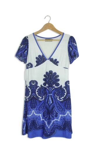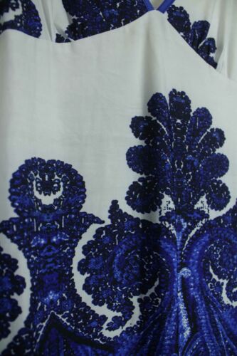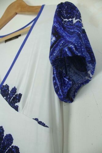 PUSSYCAT BLUE & WHITE FLORAL V NECK BLOUSE TOP SIZE L [ENDED]