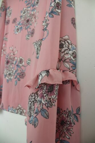 PRIMARK PINK FLORAL SEMI SHEER FRILL SLEEVE BLOUSE TOP SIZE 20 [ENDED]