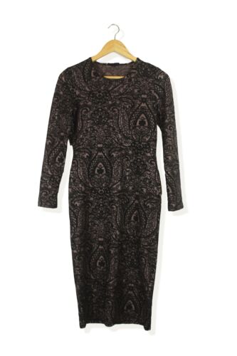 TOPSHOP NUDE PINK & BLACK PATTERN LACE LOOK MIDI BODY CON DRESS SIZE 12 [ENDED]