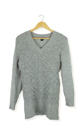 SAPPHIRE GREY TEXTURED GATHERED V NECK JUMPER SIZE 10 [ENDED]