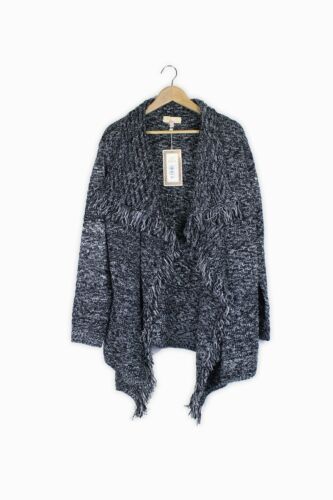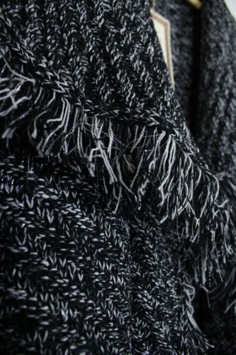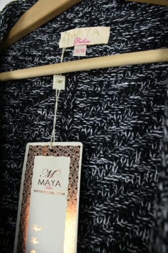 MAYA DELUXE BLACK & WHITE SILVER THREAD FRINGED CARDIGAN SIZE S/M - BRAND NEW... [ENDED]