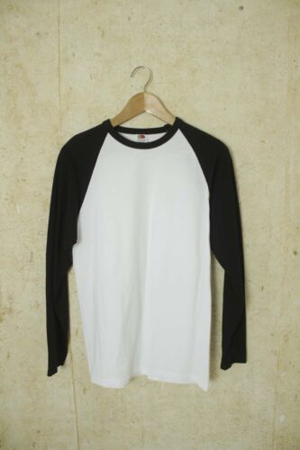 FRUIT OF THE LOOM WHITE & BLACK BASEBALL SLEEVE TOP SIZE M [ENDED]