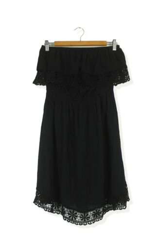 ATMOSPHERE BLACK CROCHET DETAIL SUMMER BANDEAU STRAPLESS MINI DRESS SIZE 10 [ENDED]