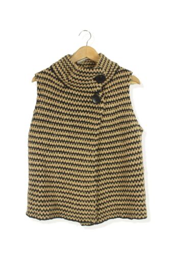TOPSHOP BEIGE & BLACK RETRO HIGH NECK SLEEVELESS CARDIGAN SIZE 12 [ENDED]