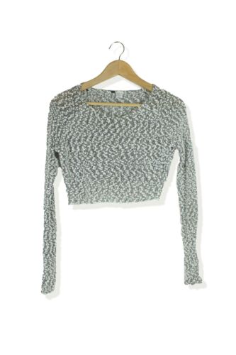 H&M GREY & WHITE SEMI SHEER CROP JUMPER SIZE XS [ENDED]