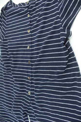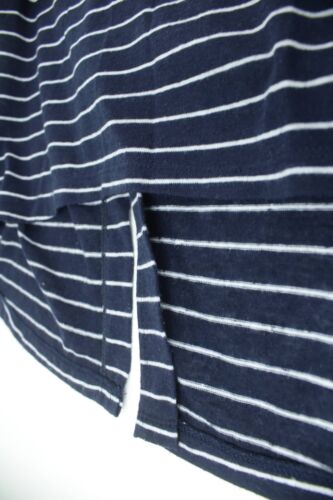 COIN 1804 BLUE & WHITE STRIPED TRAPEZE T-SHIRT BUTTON BACK SIZE L [ENDED]