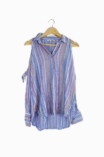 NEXT BLUE CHAMBRAY EMBROIDERED STRIPED SUMMER COLD SHOULDER SHIFT BLOUSE TOP ... [ENDED]