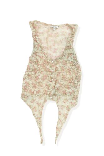 NEW LOOK PINK & BEIGE LACE SEMI SHEER TIE FRONT CROP TOP SIZE 10 [ENDED]