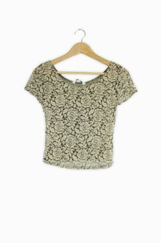 NEW LOOK BEIGE & BLACK FLORAL LACE LOOK SEMI SHEER TOP SIZE 8 [ENDED]