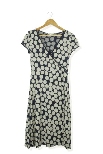NEXT BEIGE & BLOUSE SPOTTED V-NECK WRAP LOOK SUMMER DRESS SIZE 12 [ENDED]